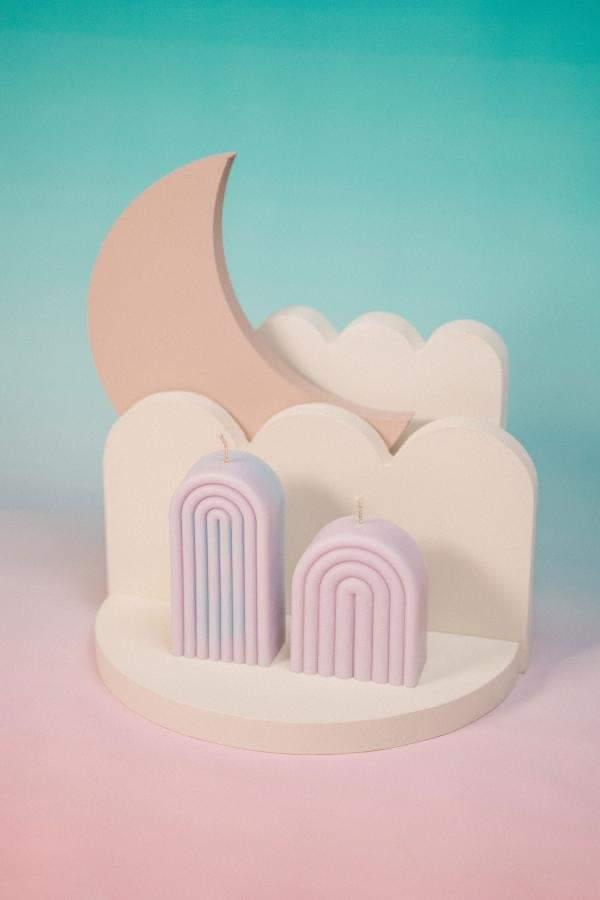 Canhwyllau Noeth ~ Nos Da. Dewis o ddwy gannwyll ddeniadol ag arogl hyfryd ac ymlaciol lafant, fanila a chamri.